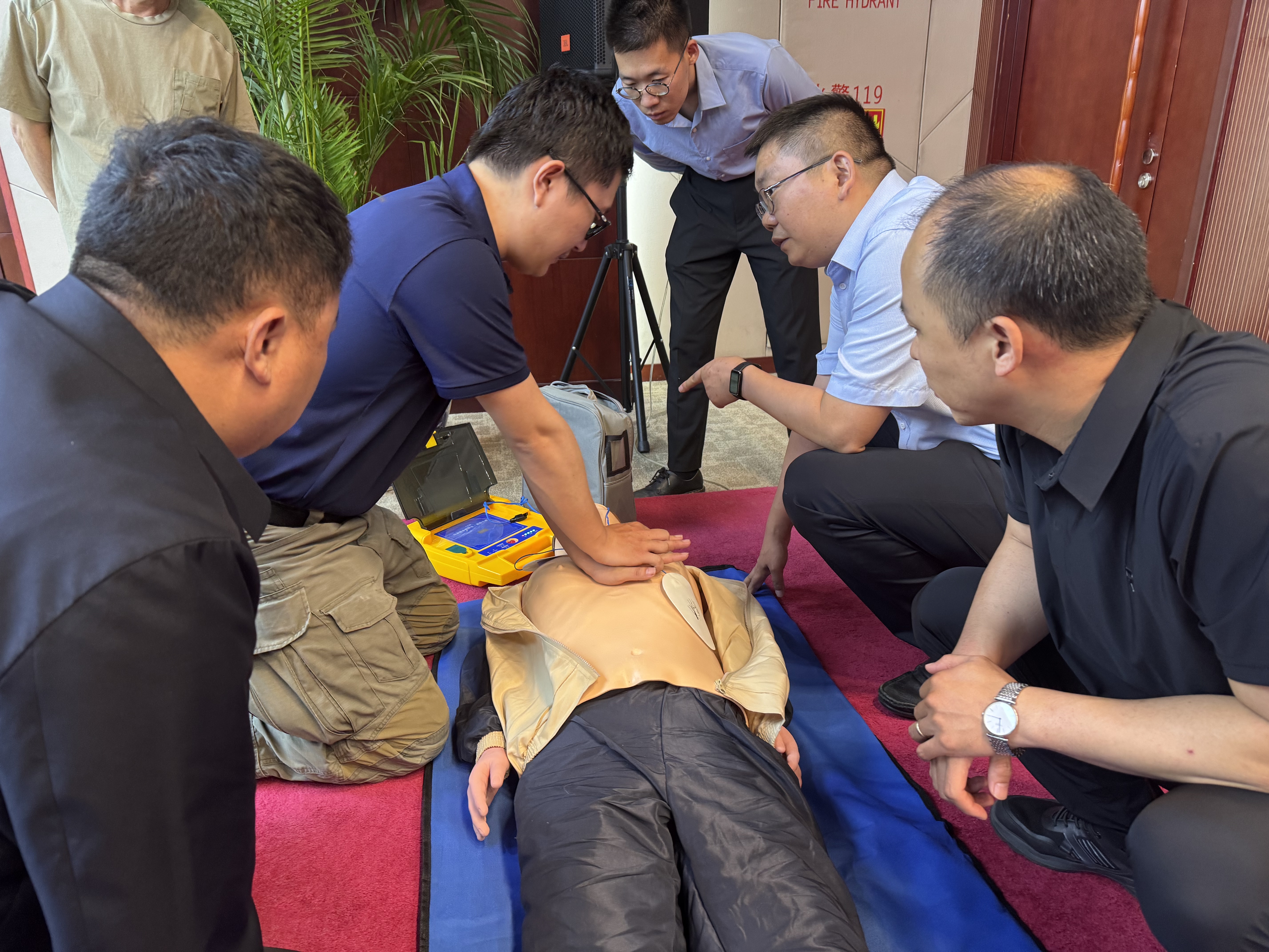 此次培訓采用“理論+深度實操”模式,特邀具備國家應急救援員資質及戰術醫療認證的專業講師授課,培訓內容涵蓋心肺復蘇(CPR)、AED使用、創傷止血與包扎等核心技能,并針對蛇咬傷、骨折等突發情況開展專項講解。培訓現場,全體員工按部門分組參與模擬急救演練,通過真實案例解析、互動教學和一對一實操考核,確保每位員工熟練掌握關鍵技能。講師手把手指導胸外按壓、AED操作及包扎技巧,幫助員工在實踐中提升應急能力。